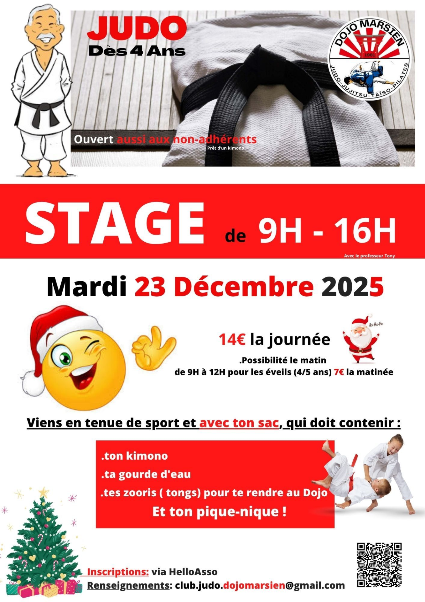 Une journée stage JUDO 4/12 ans vous est proposée.